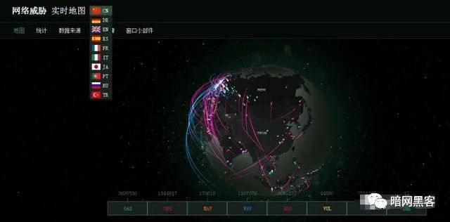 你可以很直观的看到全球黑客的实时攻击活动情况,