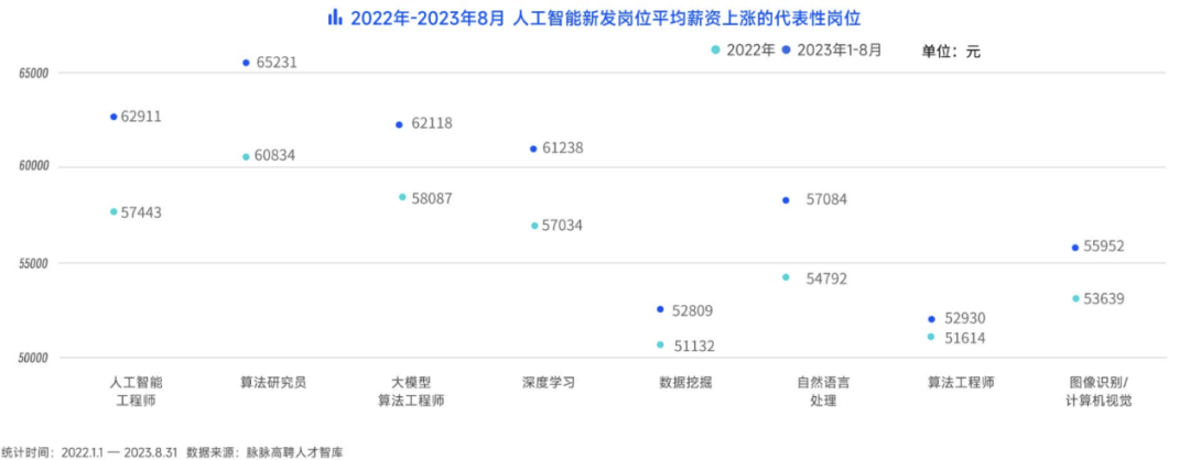 其中,数据挖掘、算法研究员、算法工程师平均月薪超过5.1万元,年薪(不包括年终奖)超过61万元。与之相对,2023年国家统计局公布面向社会生产和生活服务的IT岗位(城镇私营单位信息传输、软件和信息技术服务业)平均年薪仅为15.6万元。