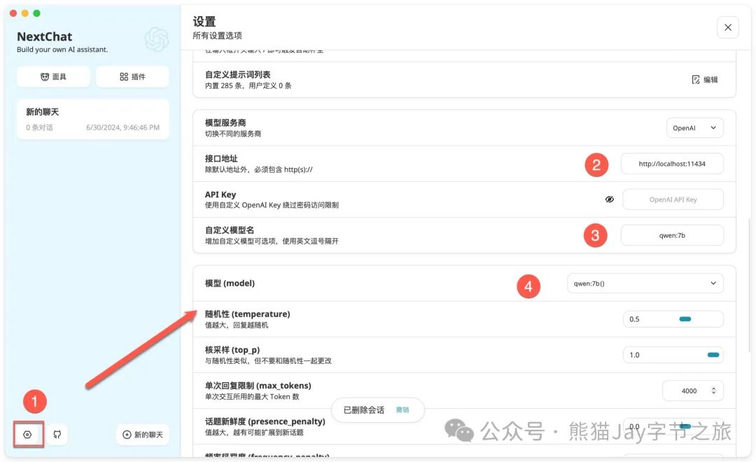 4、模型(model):qwen:7b() ,注意该选项在最下方。