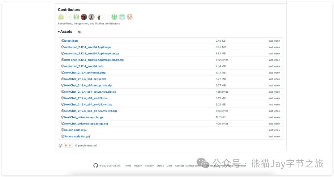进入 ChatGPT-Next-Web 仓库地址,选择对应版本下载。
