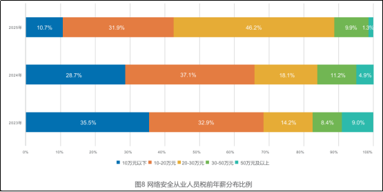 进入一个行业,难免会关注行业的平均薪资。我们来看一份官方统计报告《AI时代网络安全产业人才发展报告(2025)》,了解一下网络安全行业的薪资水平。