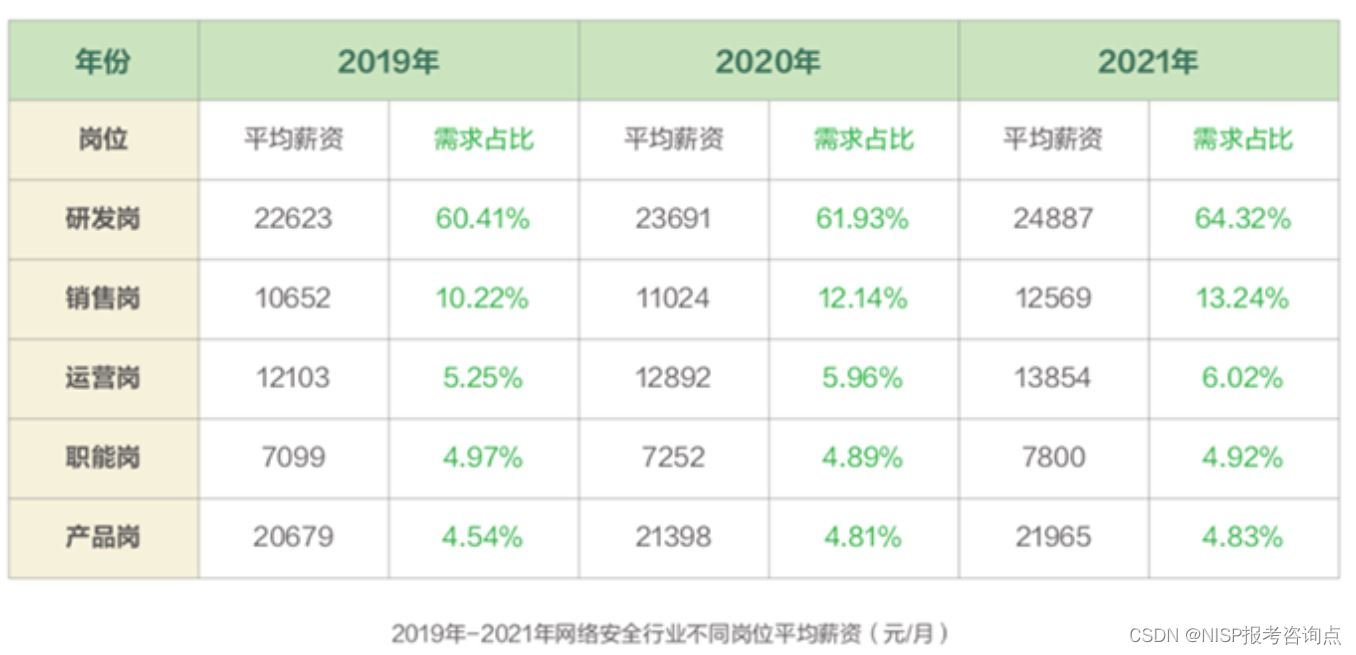 目前国家在大力主推CISP,多次发文对政府机关及企业进行CISP培训;在信息安全项目中,尤其是政府项目,有明确规定投标单位需具备多名CISP人员;企业申请信息安全服务资质或是风险评估服务机构必须具备至少2-4名CISP人员;个人具备CISP证书后一般都会加薪或是升职。