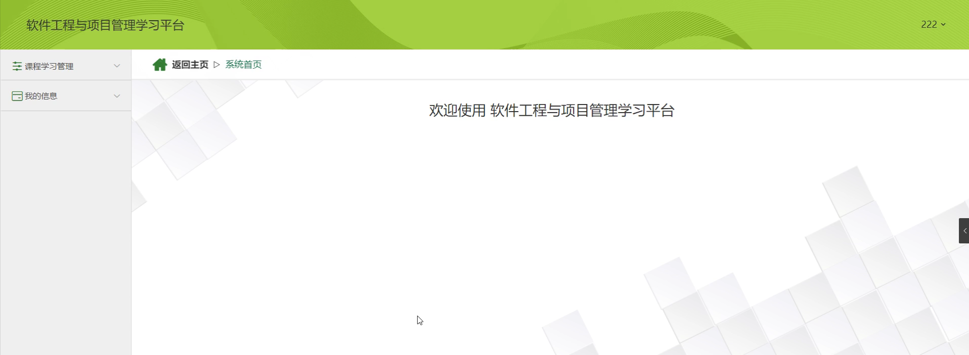 教师进入主页面,主要功能包括对课程学习管理、我的信息等进行操作。教师主页面如图5-14所示: