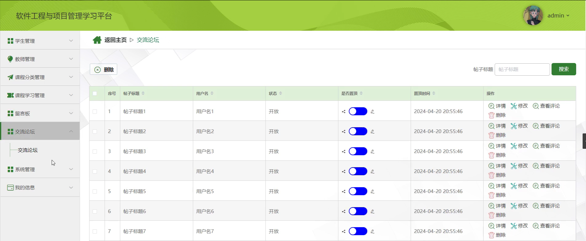 这个软件工程与项目管理学习平台采用java技术和SpringBoot搭建系统框架,后台使用MySQL数据库进行信息管理,以其丰富的功能和友好的用户界面,为学习者提供了一个高效、便捷的学习和交流环境,极大地促进了专业知识的传播和学习效率的提升,满足了现代社会对高素质软件工程与项目管理人才的培养需求。