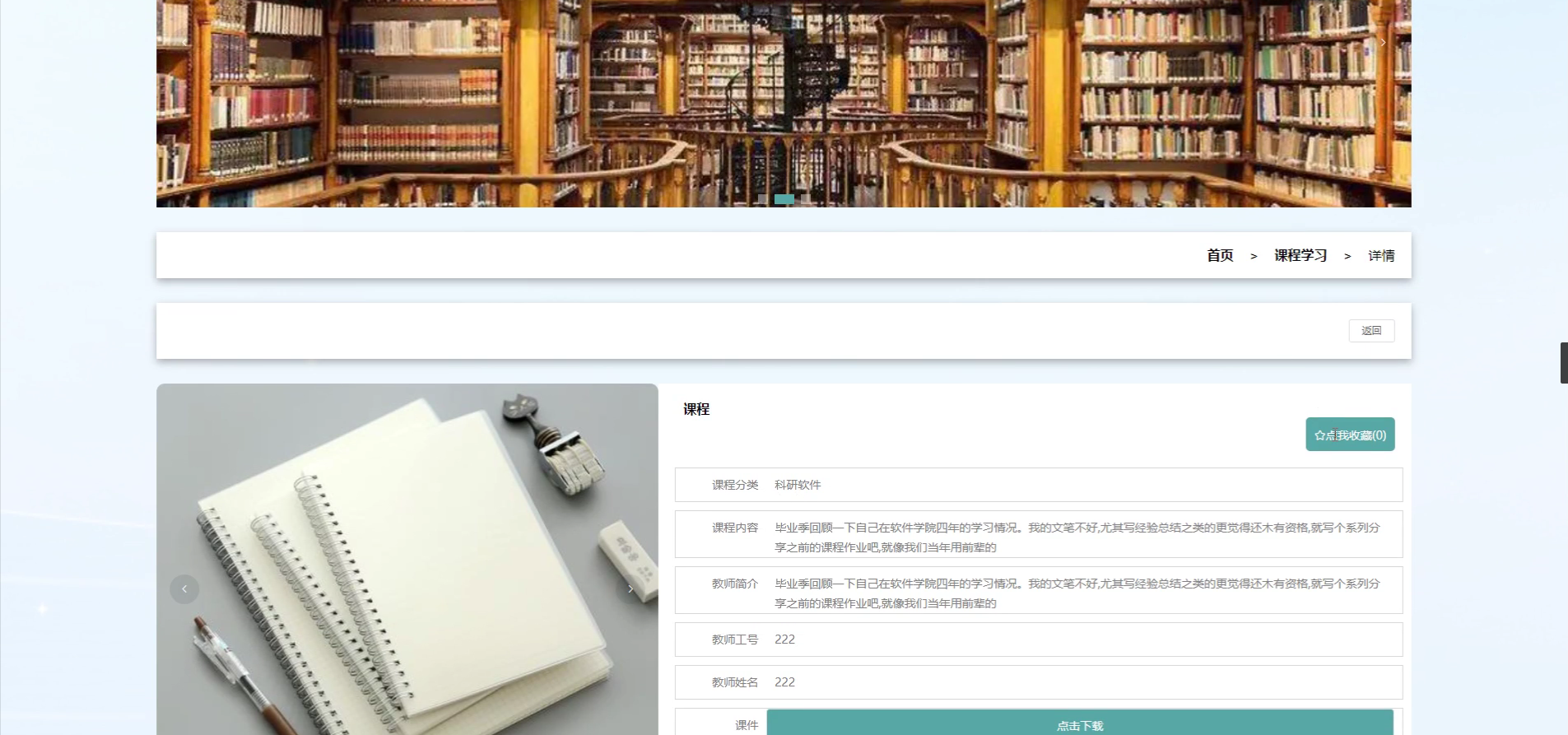 课程学习:在课程学习页面的输入栏中输入课程名称进行查询,可以查看到课程学习详细信息,并根据需要进行评论或收藏操作;课程学习页面如图5-3所示: