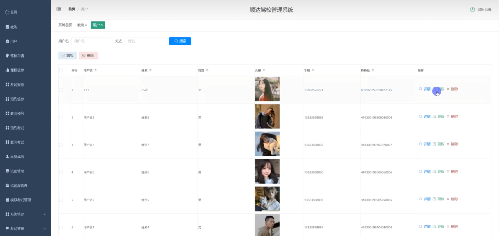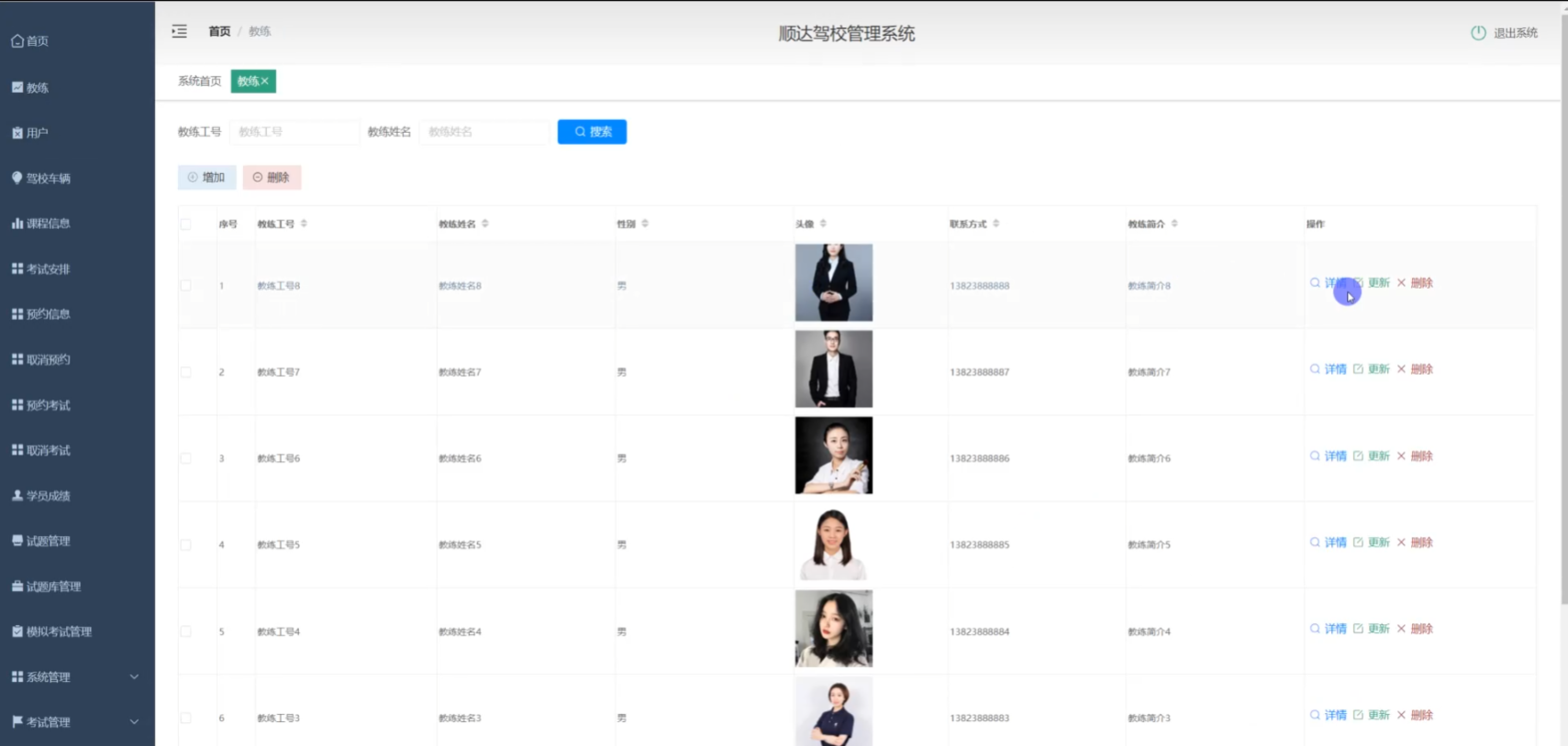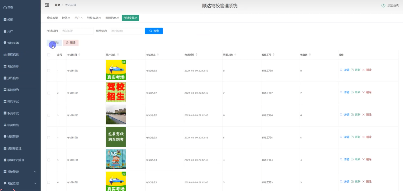 本文拟采用java技术和springboot搭建系统框架,后台使用MySQL数据库进行信息管理,设计开发的顺达驾校管理系统。通过调研和分析,系统拥有管理员、教练和用户三个角色,主要具备教练、用户、驾校车辆、课程信息、考试安排、预约信息、取消预约、预约考试、取消考试、学员成绩、试题管理、试题库管理、模拟考试管理、系统管理、考试管理等功能。将纸质管理有效实现为在线管理,极大提高工作效率。
