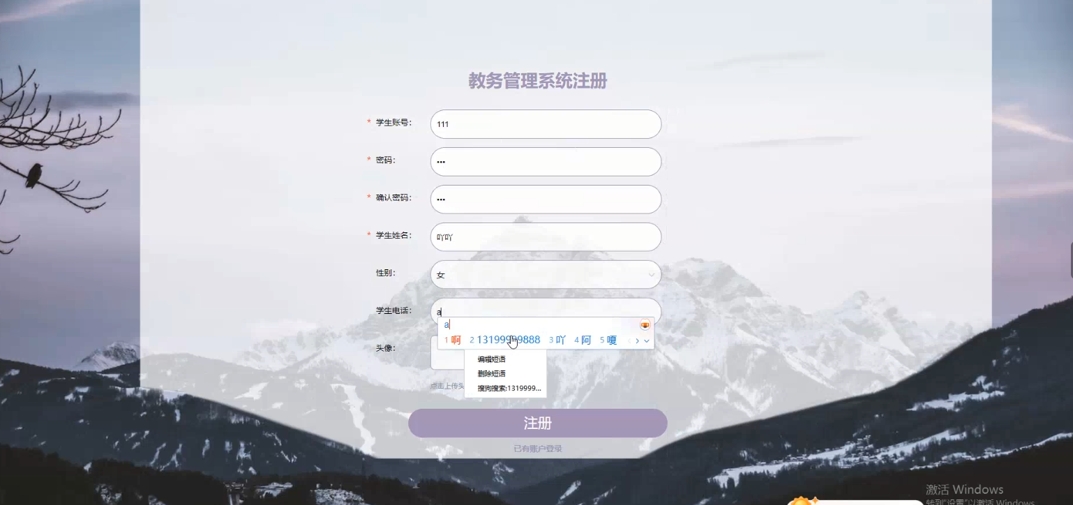 在注册流程中,用户在Vue前端填写必要信息(如用户名、密码等)并提交。前端将这些信息通过HTTP请求发送到Java后端。后端处理这些信息,检查用户名是否唯一,并将新用户数据存入MySQL数据库。完成后,后端向前端发送注册成功的确认,前端随后通知用户完成注册。这个过程实现了新用户的数据收集、验证和存储。系统图注册页面如图5-2所示: