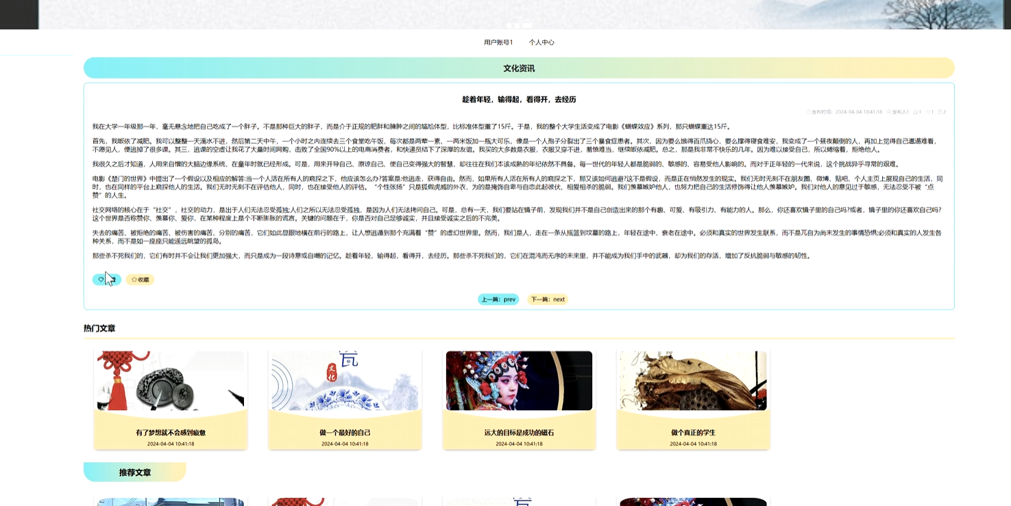 在系统前台首页,调用`$route(newValue)`方法监听路由变化,根据当前的路由地址来确定活动菜单的索引,并且根据路由的哈希部分(即URL的`#`后面的部分)来判断是否需要滚动页面到顶部或者某个特定元素的位置。如果不是首页,会将页面滚动到指定元素处,否则滚动到页面顶部。另外通过`headportrait()`方法用于更新组件渲染点前用户头像。在用户登录后,后端返回了新的用户信息,需要及时更新页面上的用户头像信息。