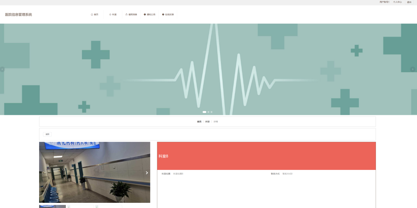 科室:在科室页面的输入栏中输入科室进行查询,可以查看到科室详细信息;科室页面如图4-3所示: