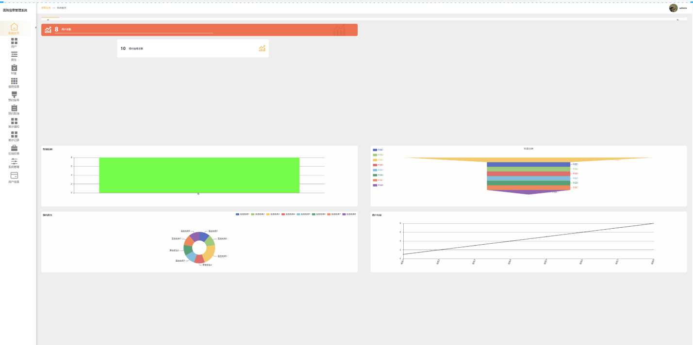 管理员进入主页面,主要功能包括对用户、医生、科室、值班信息、预约挂号、预约取消、就诊通知、就诊记录、在线反馈、系统管理、用户信息等进行操作。管理员主页面如图4-9所示: