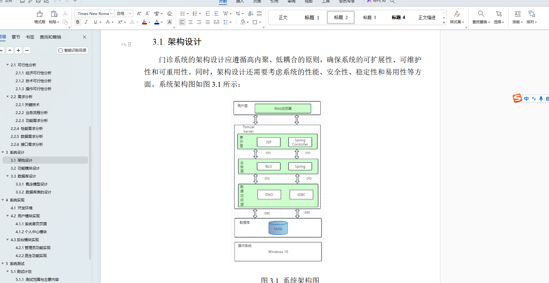 其次是视图层(View)通常是通过网页、移动应用界面或者其他用户界面来展示数据。视图层与用户交互,接受用户的输入,并将输入传递给控制器层进行处理。在MVC三层架构中,视图层应该尽量保持简单,只负责数据的展示和用户交互,不涉及业务逻辑的处理,以保持视图层的清晰度和可复用性,最后是控制器层(Controller),每个层都有特定的职责和功能,通过分层架构设计,实现代码模块化,为软件开发提供了一种有效的架构模式。系统架构如图4-1所示。