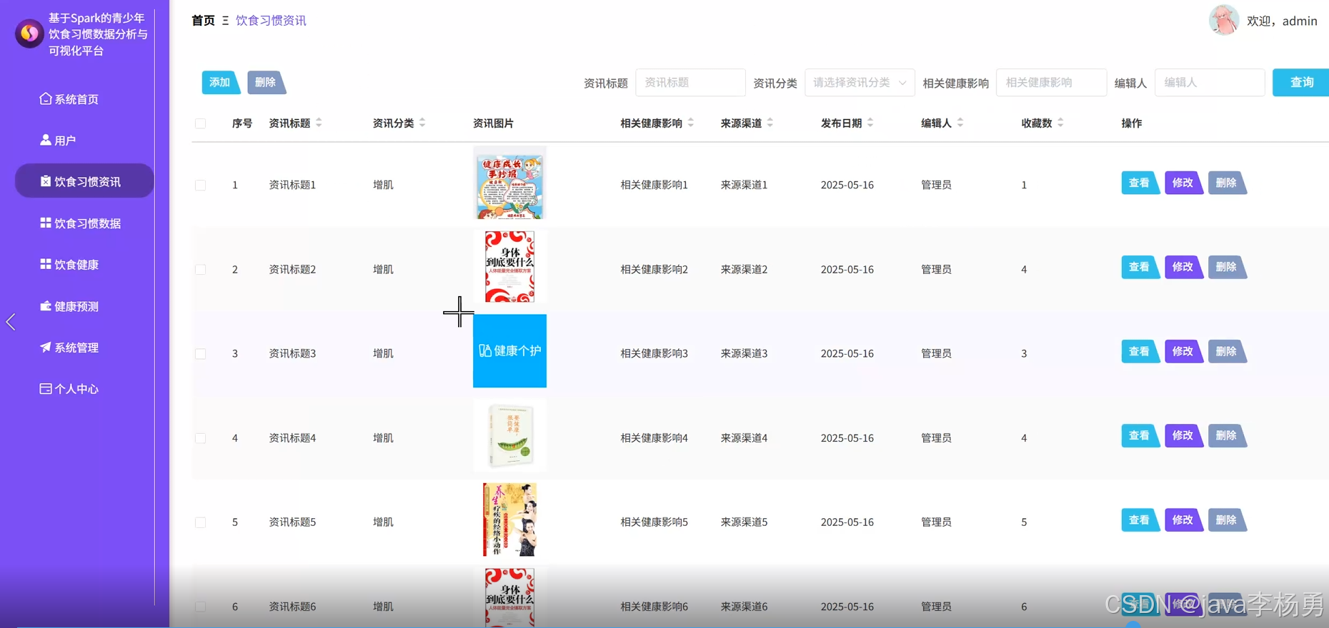 关键词:Spark;青少年;饮食习惯;大数据分析;健康管理;可视化平台