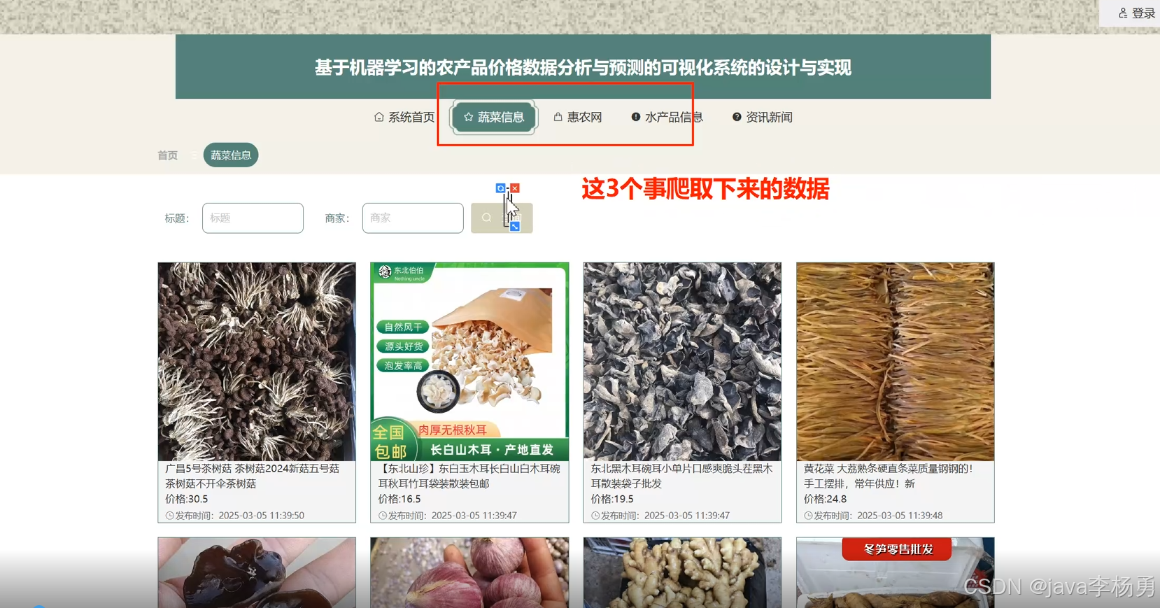 在此背景下,本项目旨在设计并实现一个集**网络爬虫、Hadoop大数据处理、机器学习预测与协同过滤推荐算法**于一体的农产品价格数据分析与可视化系统,具有重要的理论与现实意义。