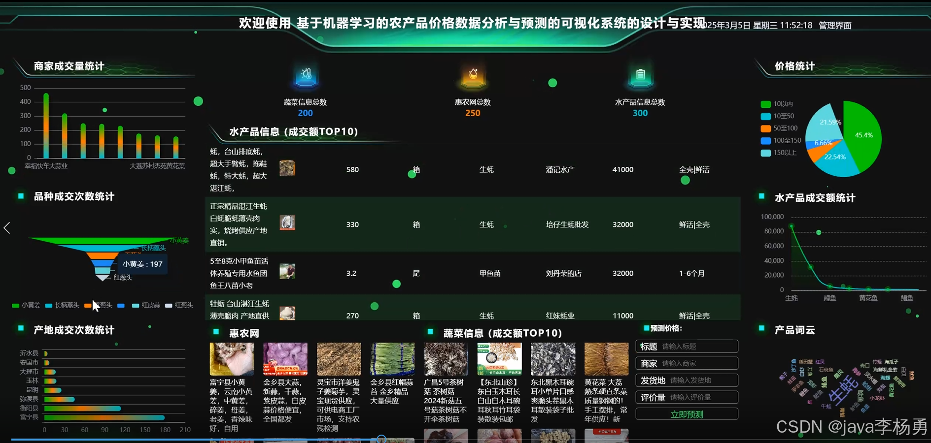 综上所述,本系统的研究与实现,是推动农业数字化转型、赋能智慧农业发展的关键一环,对提升我国农产品市场的运行效率与智能化水平具有重要意义。