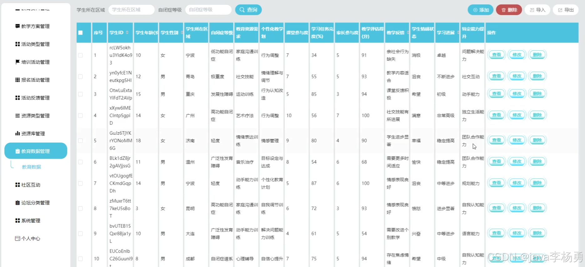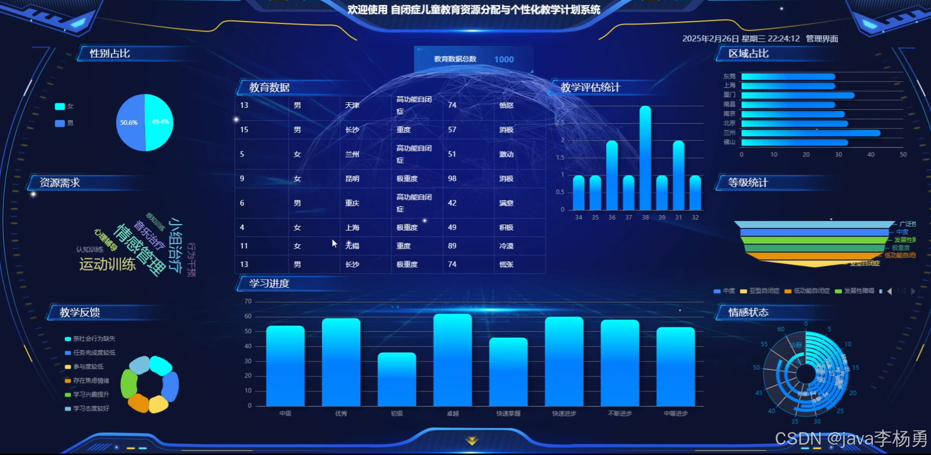 目前,尽管国内外已有一些自闭症教育研究和项目尝试探索个性化教育与资源分配,但仍存在许多不足之处。例如,许多现有系统未能有效利用大数据分析技术,且对自闭症儿童个性化需求的关注不够深入。因此,基于大数据的自闭症儿童教育资源分配与个性化教学计划系统的研究和开发显得尤为重要。本研究旨在借助大数据分析技术,开发一个科学、高效的教育资源分配与个性化教学系统,帮助自闭症儿童实现更加精准和有效的教育,提升他们的学习效果和生活质量。
