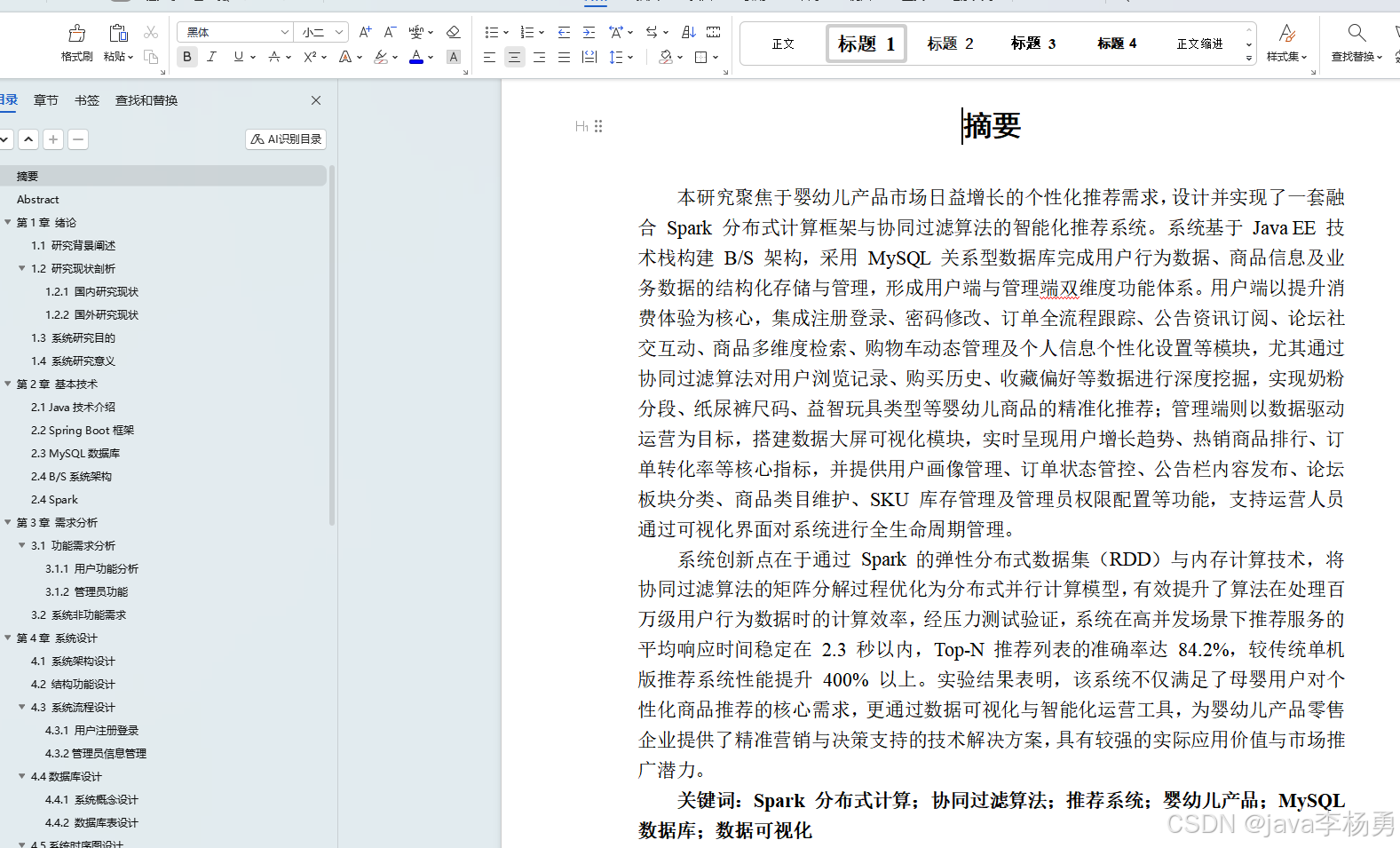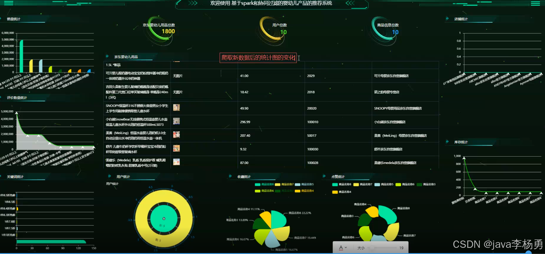 关键词:Spark 分布式计算;协同过滤算法;推荐系统;婴幼儿产品;MySQL 数据库;数据可视化