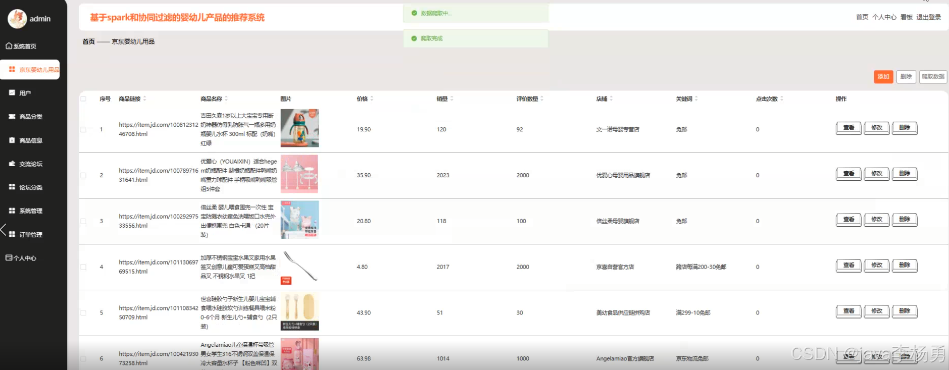基于大数据+爬虫+数据可视化+SpringBoot+Vue的智能孕婴护理管理与可视化平台系统