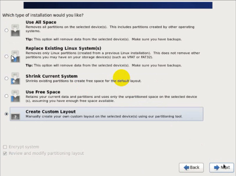 3.9 选择布局, 我们选择最后一个,自定义布局, [点击 Next]