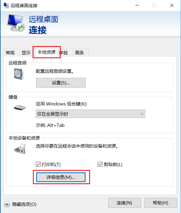 点击本地资源选项卡, 点击详细信息