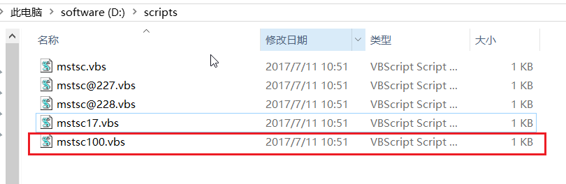 - 双击脚本mstsc@100.vbs 文件即可