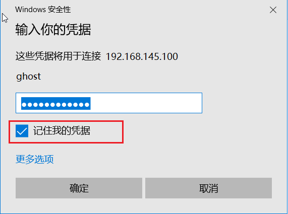 对于记住凭据之后的远程连接就比较简单了, 连接步骤为: