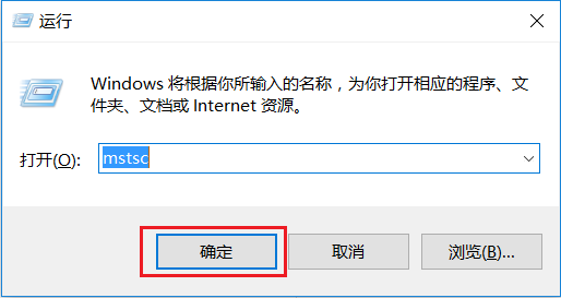 使用 windows 键 + R 打开运行窗口, 输入mstsc, 点确定