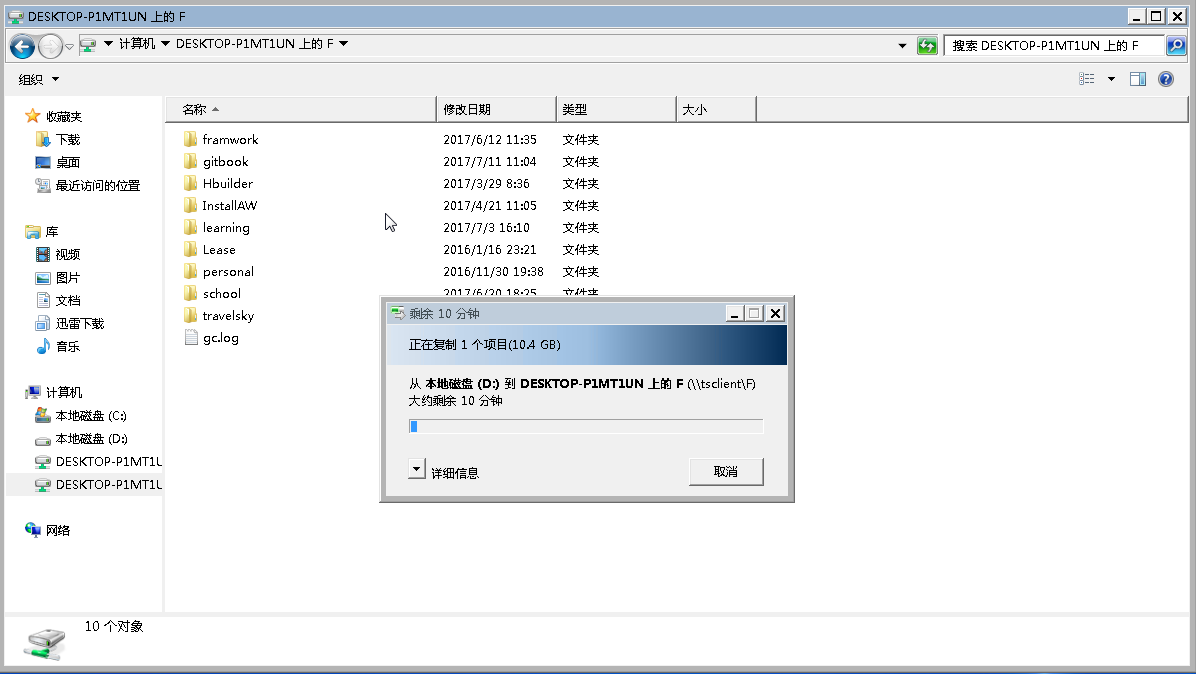 下载的复制粘贴操作都是在远程桌面窗口中进行的: