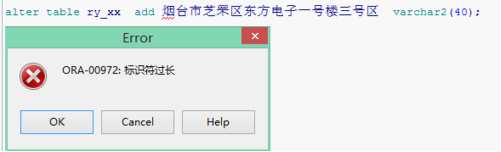 alter table ry_xx add 烟台市芝罘区东方电子一号楼 varchar2(40);如下示例