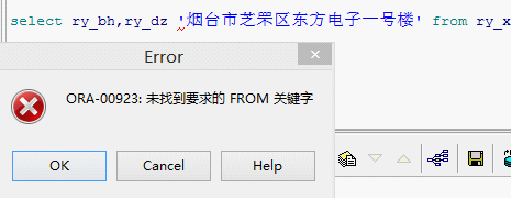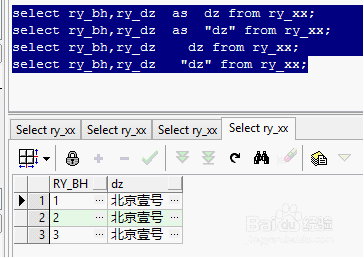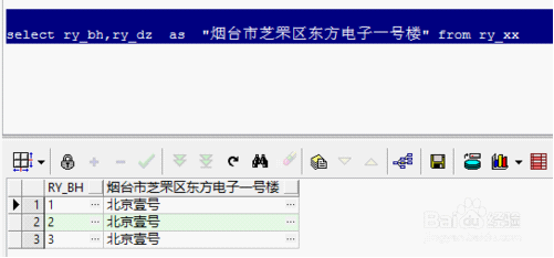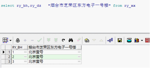 如下例子:select ry_bh,ry_dz 烟台市芝罘区东方电子一号楼 from ry_xx