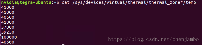 2.输入以下指令查看温度,以下数字分别对应以上硬件,将数字除以1000得出实际温度(摄氏度)