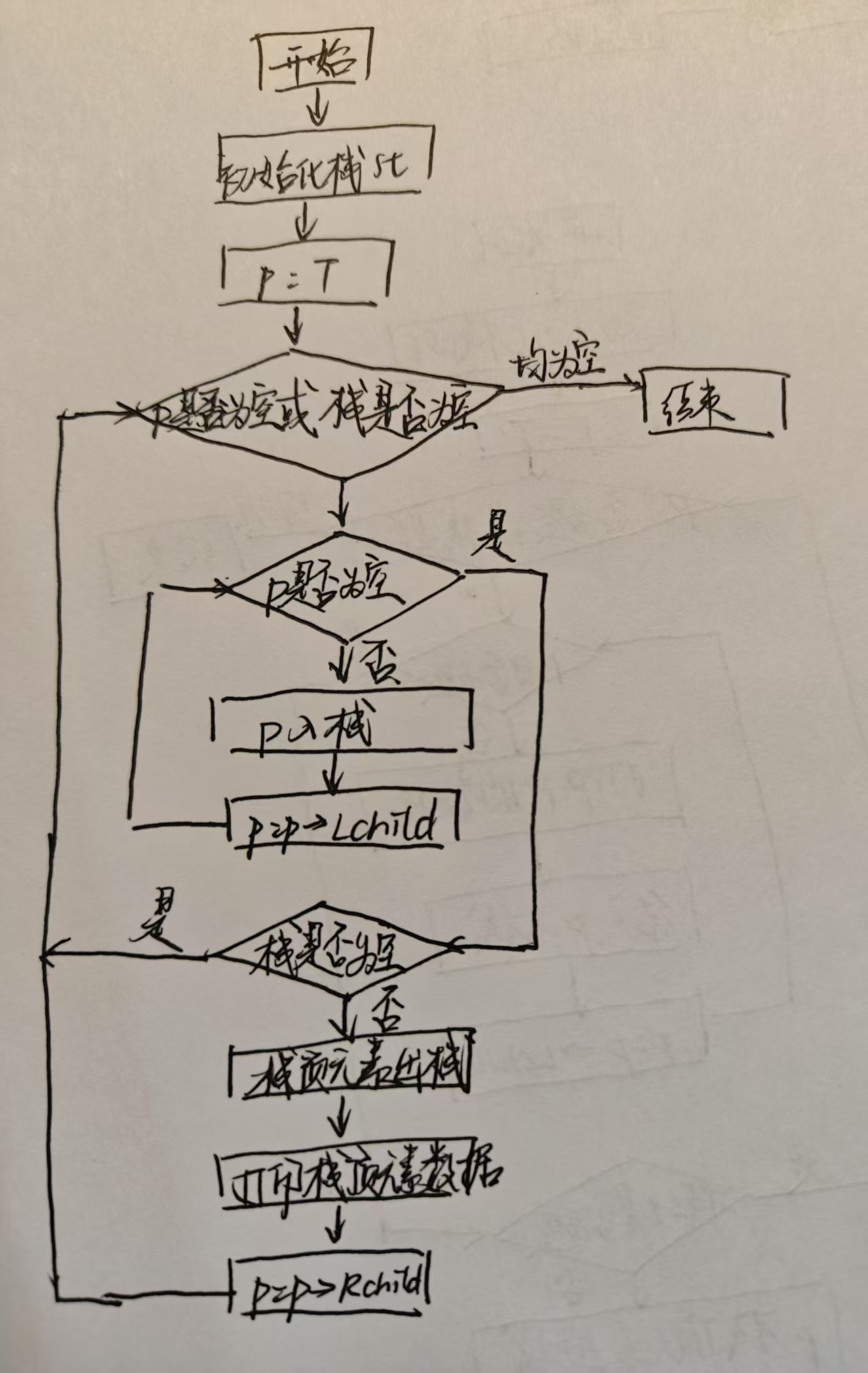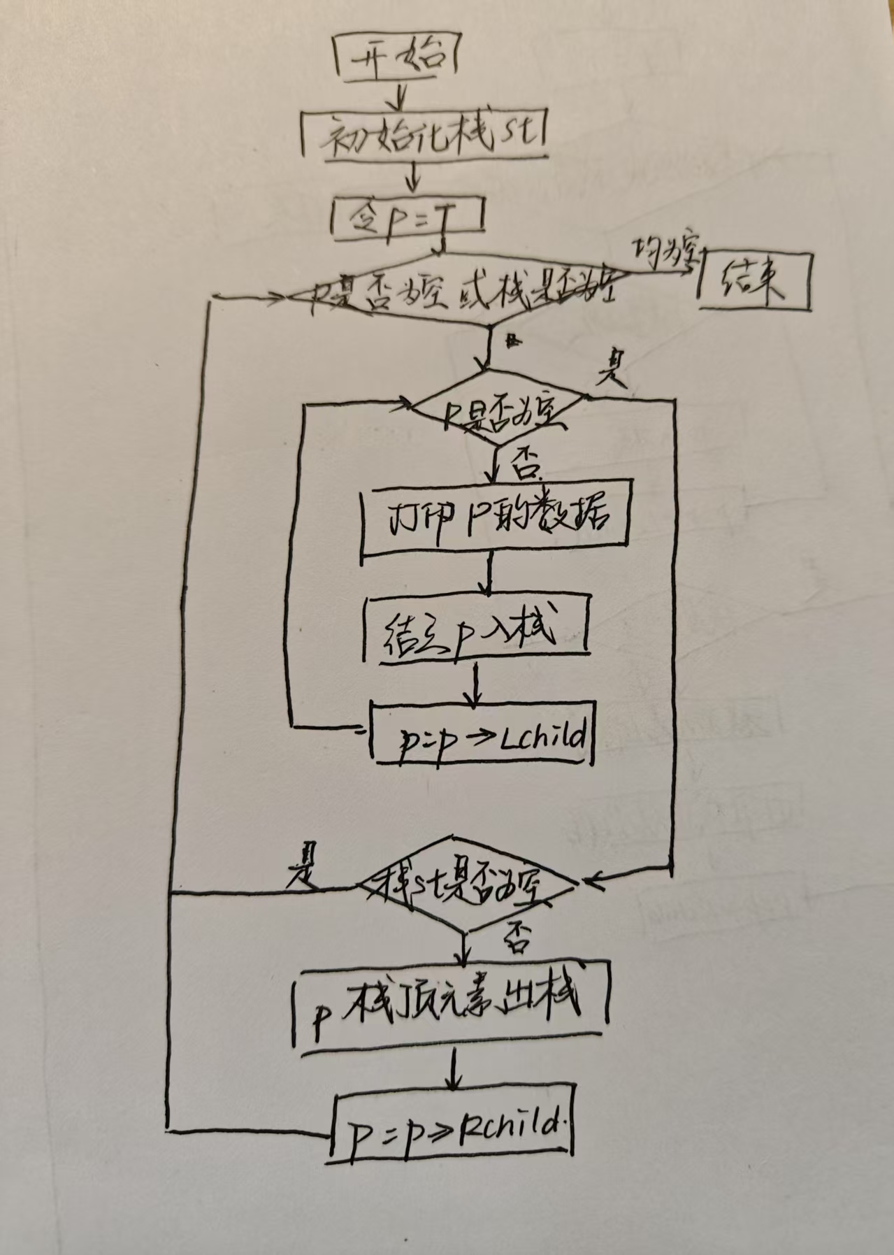 若p不为空,p进栈, p=p->Lchild ,直到p为空为止;(此步为循环)