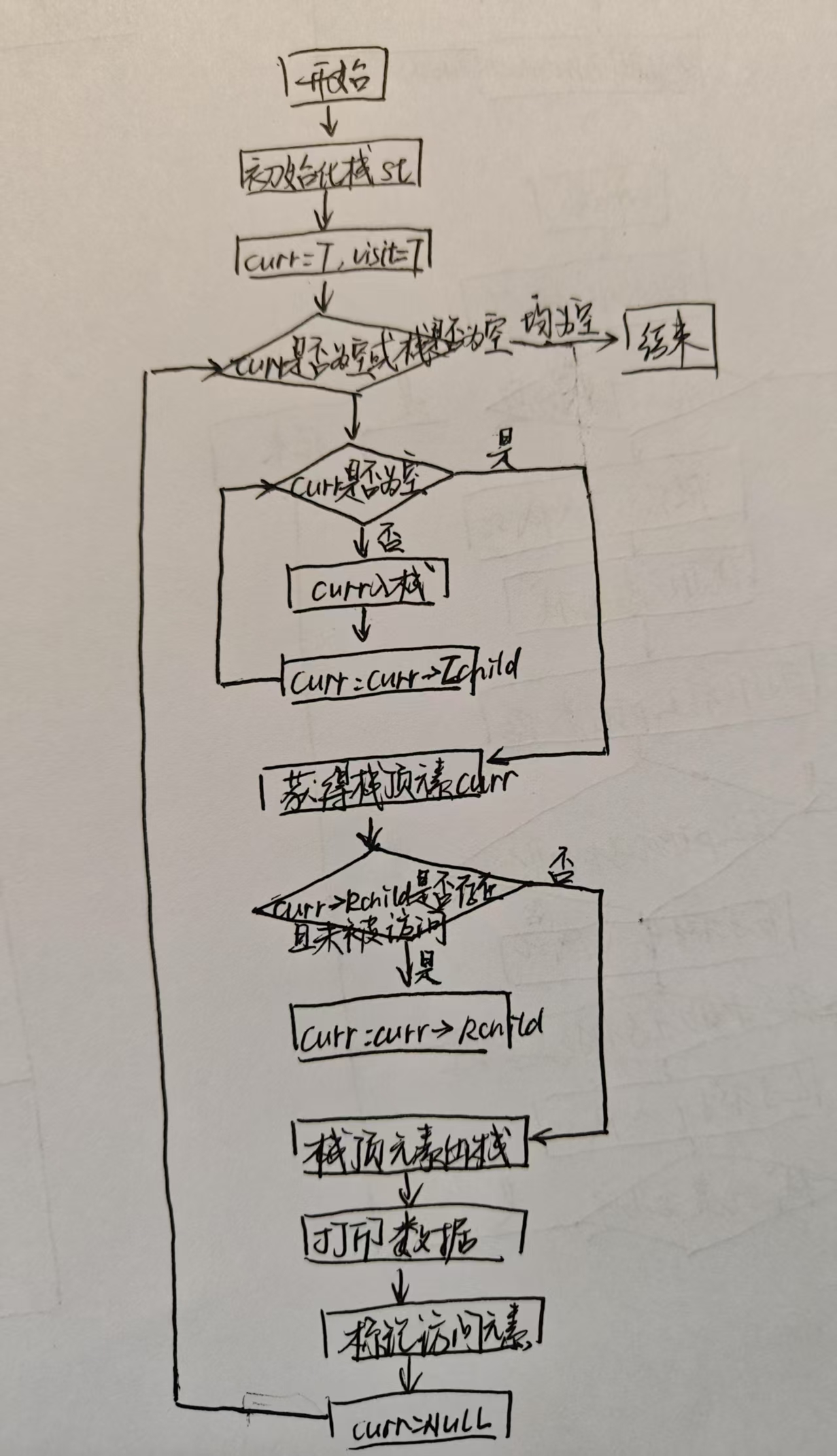 if (curr->Rchild && curr->Rchild != visit) {//右结点存在同时结点未被访问过
