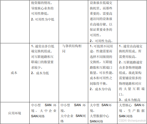 结构特点: 主机和存储之间可能存在一台或多台交换机,它们之间通讯可能会需要通过 ISL(交换机间链路) 。在条状架构里面,每台交换机的性能都是同性能级别的,通常都是中 低端的交换机,所以这种架构通常用于一些中下 SAN规模的环境。