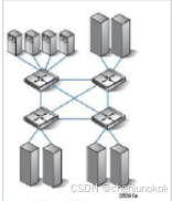 全网状结构要求结构内的所有交换机两两相连, 任意两台交换机之间的条数一定不 会超过 1 跳,同时,结构中的每台交换机都运行着路由协议( FSPF),数据可以根据链路的 带宽、开销和拥塞情况而选择不同的链路到达目的地, 即便是单条链路或单台交换机出现损坏也不会对其网络有所影响, 网络仍可从源设备提供数据到目标设备。 这种结构需要使用较 多的 ISL链路,对交换机的端口数量需求很大, 故用于此结构的交换机通常都为核心交换机, 而又由于核心交换机都拥有双引擎、 双电源等冗余特性, 故这种结构能提供最好的可靠性和 可用性,通常用于核心的、对冗余性有极高要求的 SAN环境。