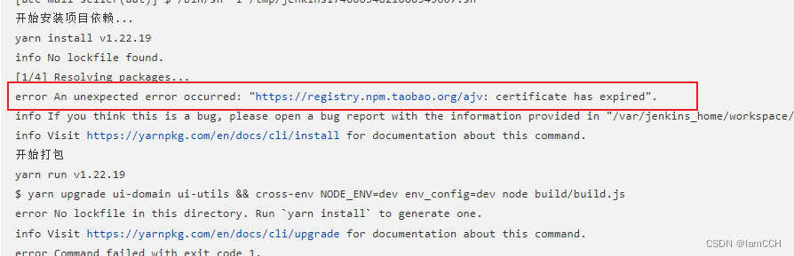 今天用jenkins发布项目时失败了,而前几天还好好的。