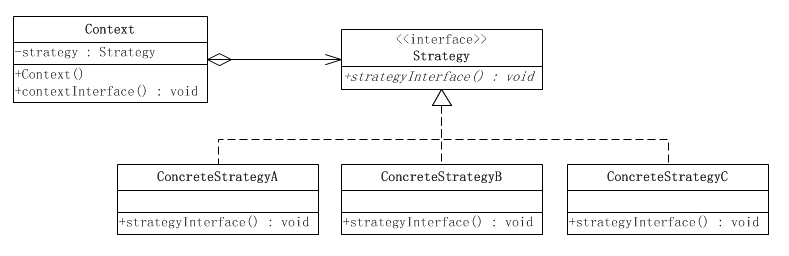 策略模式体现了组合大于继承的面向对象设计原则,使用场景是对象具有某个行为,但在不同场景中,该行为有不同的实现方法,我们要把这类行为独立出来,定义一个该行为的接口,并且有多个实现类,使得不同的实例对象可以动态绑定不同的实现方法。