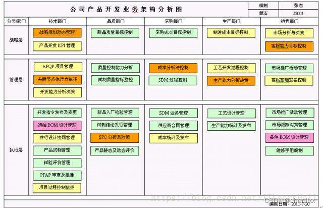竖式业务流程图可以划制成矩阵式流程图,就可以同时说明业务、工作的流程,还可以在流程中明确各自的分工和职责,关键的控制点等。业务流程要重点注意可靠性、资源利用率、反应性、灵活性、较低的管理成本五方面问题。