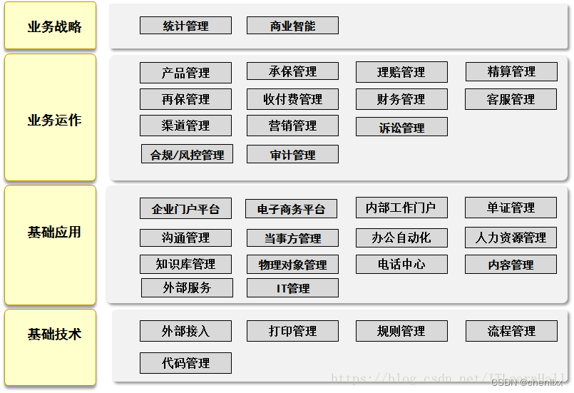 单个系统的应用架构:在开发或设计单一IT系统时,设计系统的主要模块和功能点,系统技术实现是从前端展示到业务处理逻辑,到后台数据是如何架构的。这方面的工作一般属于项目组,而不是企业架构的范畴,不过各个系统的架构设计需要遵循企业总体应用架构原则。