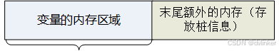 此处我们简单地说一下检测函数中局部变量附近的内存是否被越界的原理。开启/RTC编译选项后,在给变量分配内存时,会在代码申请的内存末尾处多追加额外分配一些内存,用来存放一些桩信息: