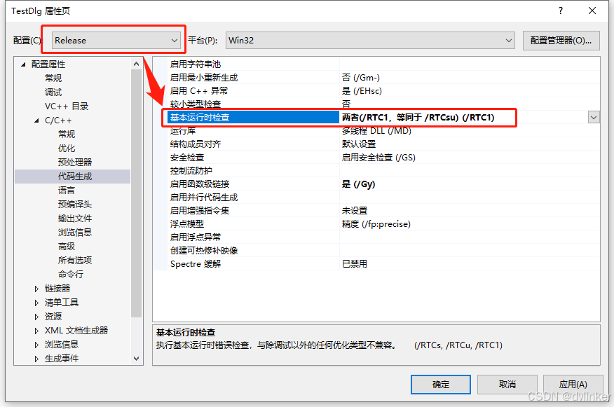 /RTC编译选项在Release下是默认关闭的,也是可以选择打开的: