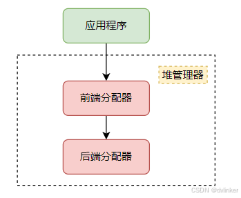 堆主要有前端分配器和后端分配器,我所理解的前端分配器就是类似于缓存一样,便于快速的查询所需要的内存块,当前端分配器搞不定的时候,就交给后端分配器。