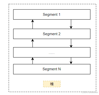 那如果还没有找到呢?那么这个时候堆管理器会从Segment中提交(Commit)更多的内存去使用,创建新的块, 如果当前Segment空间也不够了,那就创建新的Segement