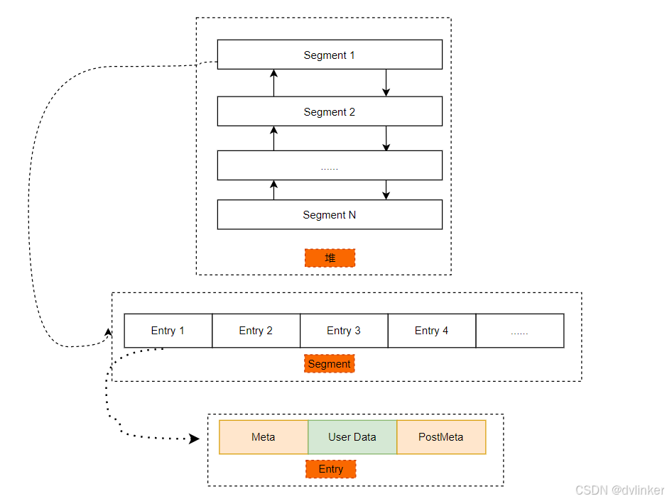 - 一个堆由若干个Segment组成,每个Segment是连续的空间