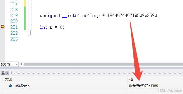 其实要将10进制18446744071950963590转换成16进制,其实很简单,直接将18446744071950963590赋值给一个64位变量,然后再监视窗口中查看其16进制值就可以了,如下: