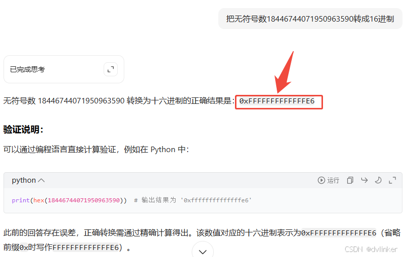 某天在排查某个C++软件异常问题时,遇到了一个很大的64位10进制数据18446744071950963590,为了方便排查问题,需要将该10进制数转成16进制的。最开始想到了使用大模型转一下,结果观察下来发现,deepseek、豆包、通义千问和讯飞星火这几个大模型转换都是错的,只有百度的文心一言的转换结果是对的,让人大跌眼镜!