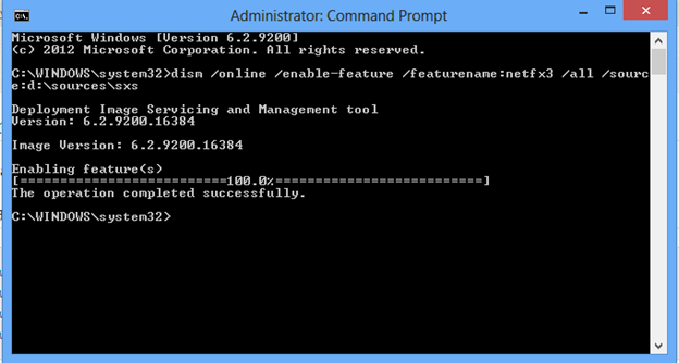 - 输入Dism /online /enable-feature /featurename:NetFX3 /All /Source:D:\sources\SxS /LimitAccess