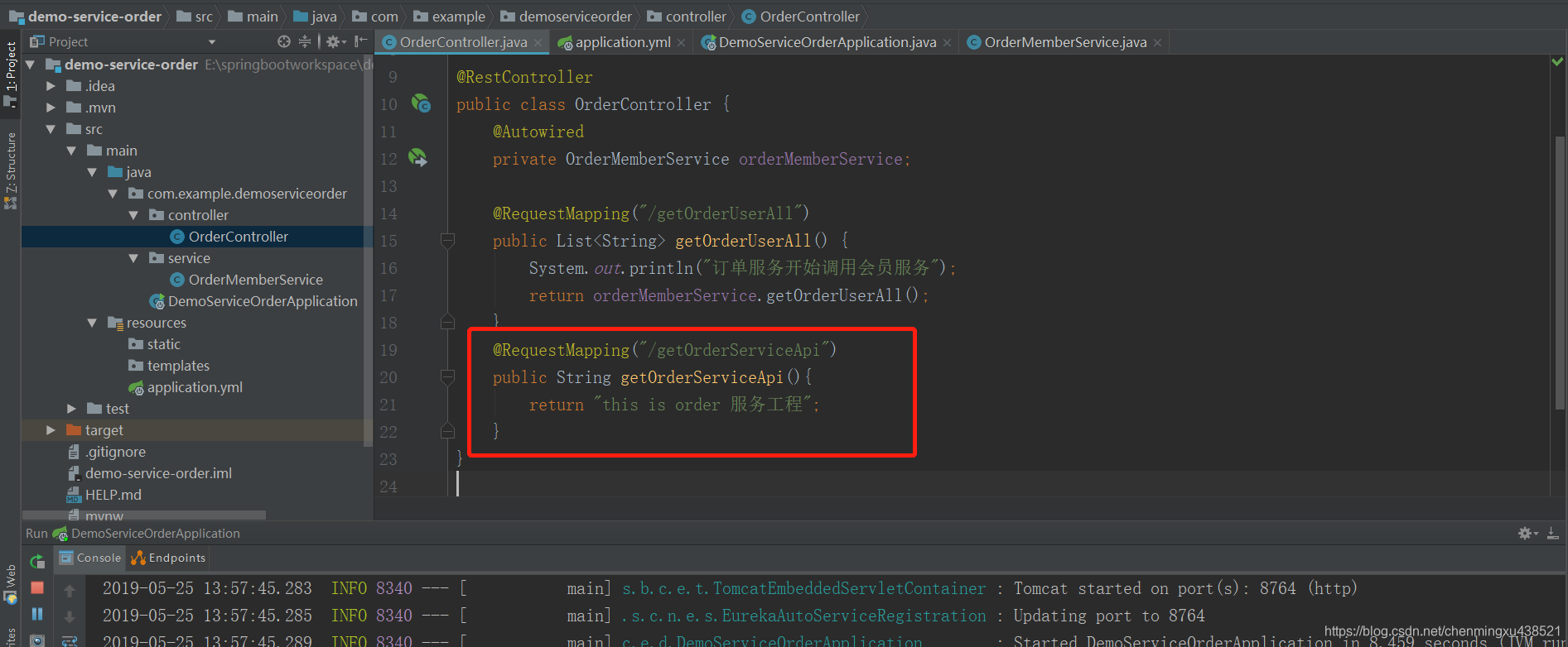 2.4.项目demo-service-order(订单服务代码)添加一个接口