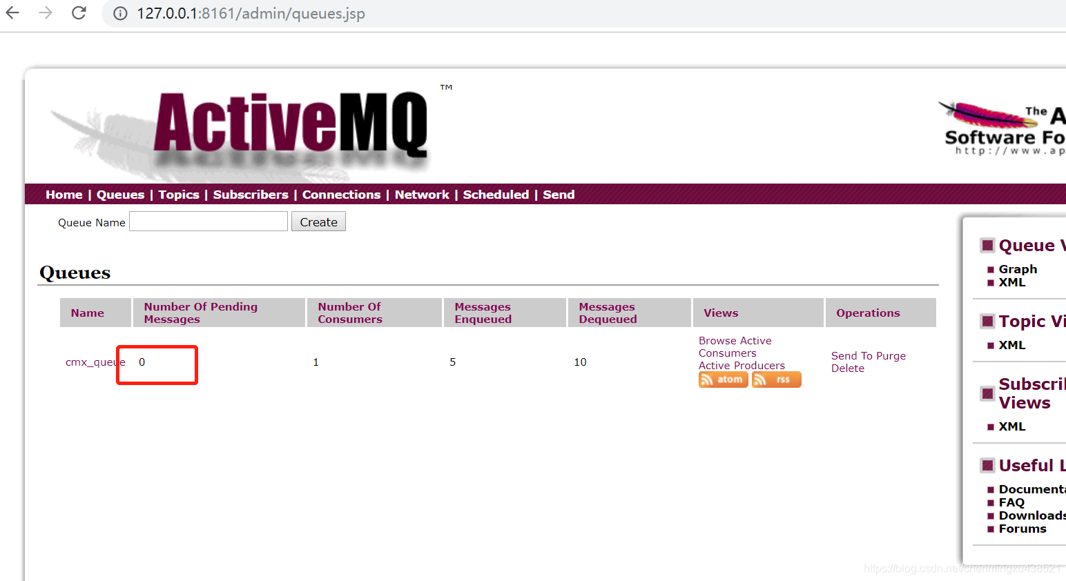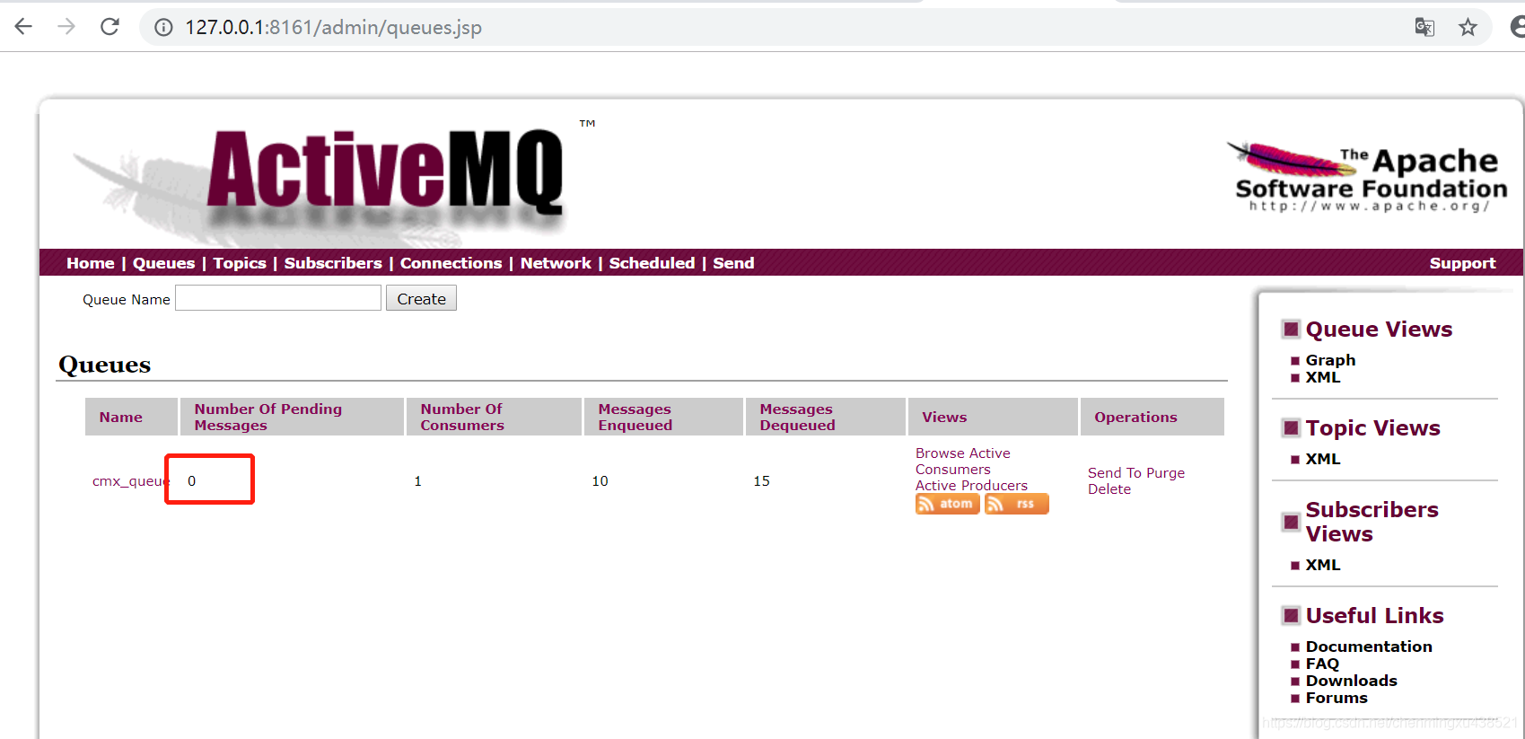 1.3.3.测试结果(如果不在Consumer.java中设置textMessage.acknowledge(),能消费到数据但是下图的红框中的数据还是没变化,只有加上那句话之后,才为0,这样就完成了手动签收)