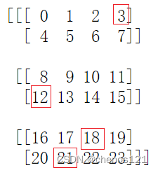 细心的读者可以发现,前面的切片和索引操作只能索引出有规律的元素数据,比如同轴向,若要索引如下元素则无法实现,下面就介绍数组的高级索引,可以实现对任意元素的索引。