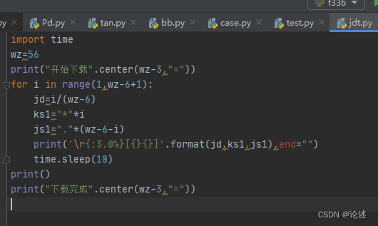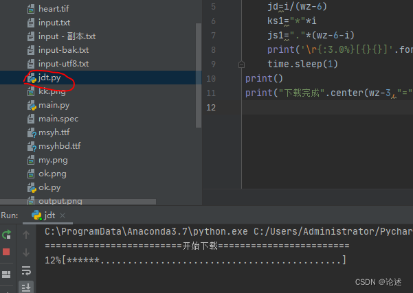 pycharm中编写一个进度第程序jdt.py